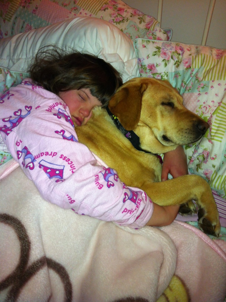 If Flikka barked it was only ever once. One single, gruff, woof; just enough to alert us to the person at the door; or to her desire to come or go through it. She had the most adorable wrinkly-Labrador face that made us laugh out loud as we watched her emotions pass through her fur. She was an accomplished sleeper. Late in the evening we used to say her name very, very softly and her tail would bang-bang-bang on the wall even while she snored on through her dreams. In fact, one of her greatest gifts to us came through her aptitude for slumber. Against every scrap of my better judgement we had told Little One that Flikka would be allowed to sleep on her bed! This bribe was not only effective in getting our 12 year old into bed on many occasions; but with Flikka on the end of her bed Little One began to routinely sleep all night. We had been getting up to our daughter in the wee hours every night, sometimes more than once, with very few exceptions for more than a decade. Thank you, Flikka, for teaching Little One something that we could not.